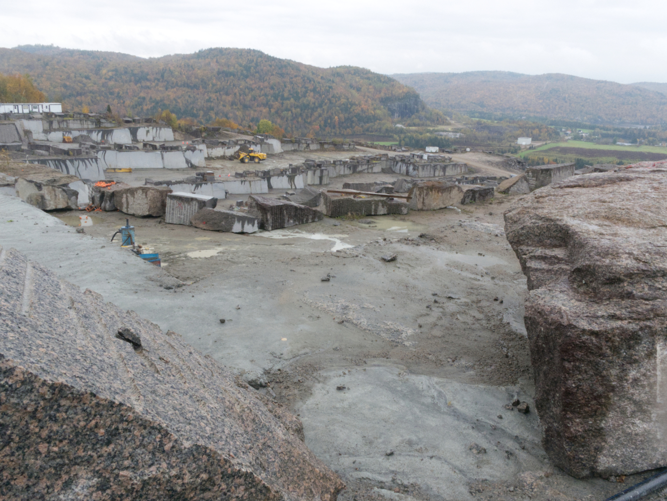 View into quarry at Rivière-à-Pierre (QC), October 2023.